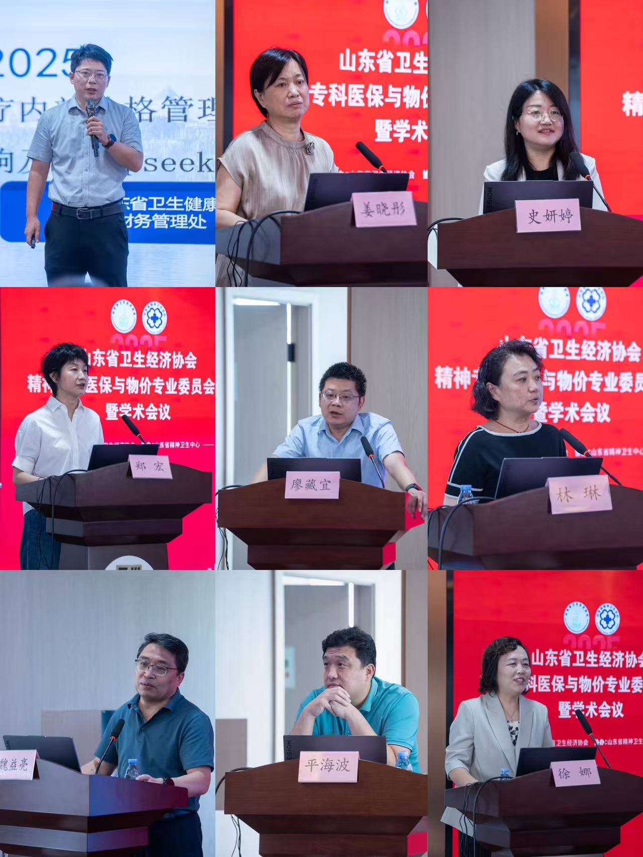 成立环节选举后,会议进入学术交流环节,多位专家围绕精神专科医保与物价的核心议题展开分享。山东省卫生健康委财务处副处长孙财,山东省医疗保障局医药价格和招标采购处二级调研员姜晓彤,山东省医疗保障稽核中心稽核一科负责人史妍婷,宁波大学附属康宁医院象山分院执行院长郑宏,中国政法大学副教授、博士生导师、公共事业管理系主任廖藏宜,北京大学第六医院医保物价办公室主任林琳,山东第一医科大学第一附属医院(山东省千佛山医院)医保、物价办主任魏益亮,山东省大学齐鲁医院医保办副主任平海波,山东省中医院计划财务处副处长徐娜分别以《医疗服务价格改革对公医院高质量发展影响》《医疗服务价格改革与立项指南政策解读》《医保基金监管形势及常见的违规违约情形》《破局立新-浙鲁精神专科医保物价思考与展望》《精神类疾病的医保支付机制设计》《配合医疗服务项目价格改革推进立项指南平稳落地实施》《国家立项指南落地之医疗机构应对措施》《DRG支付下医院医保物价管理应对策略》《中医类价格项目新政探究》为主题依序进行了学术分享。