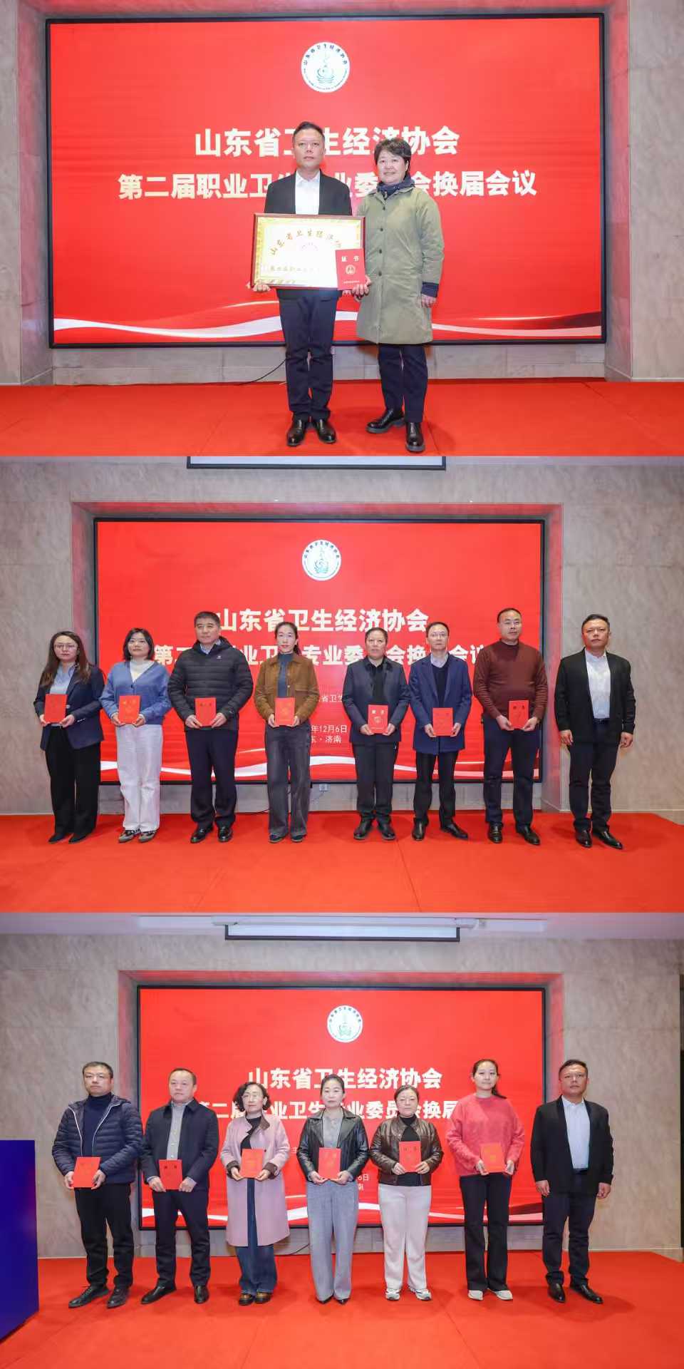 会议选举产生了山东省卫生经济协会第二届职业卫生专业委员会,山东省第一医科大学附属职业病医院总会计师肖笑当选为主任委员。山东省卫生经济协会副会长兼秘书长郝庆美为当选的主任委员颁发证书,并为专业委员会授牌。