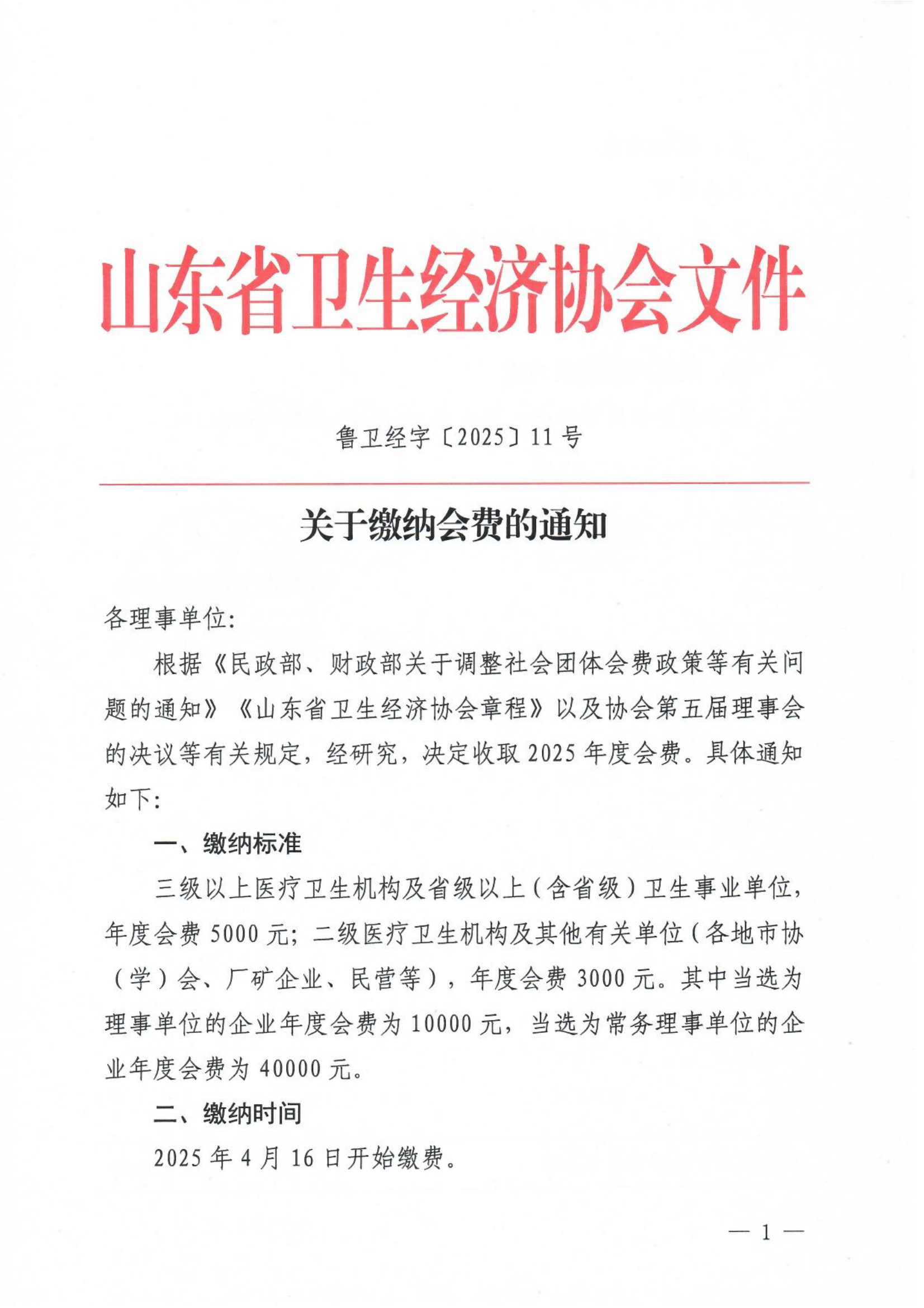 鲁卫经字【2025】11号 关于缴纳会费的通知.pdf
