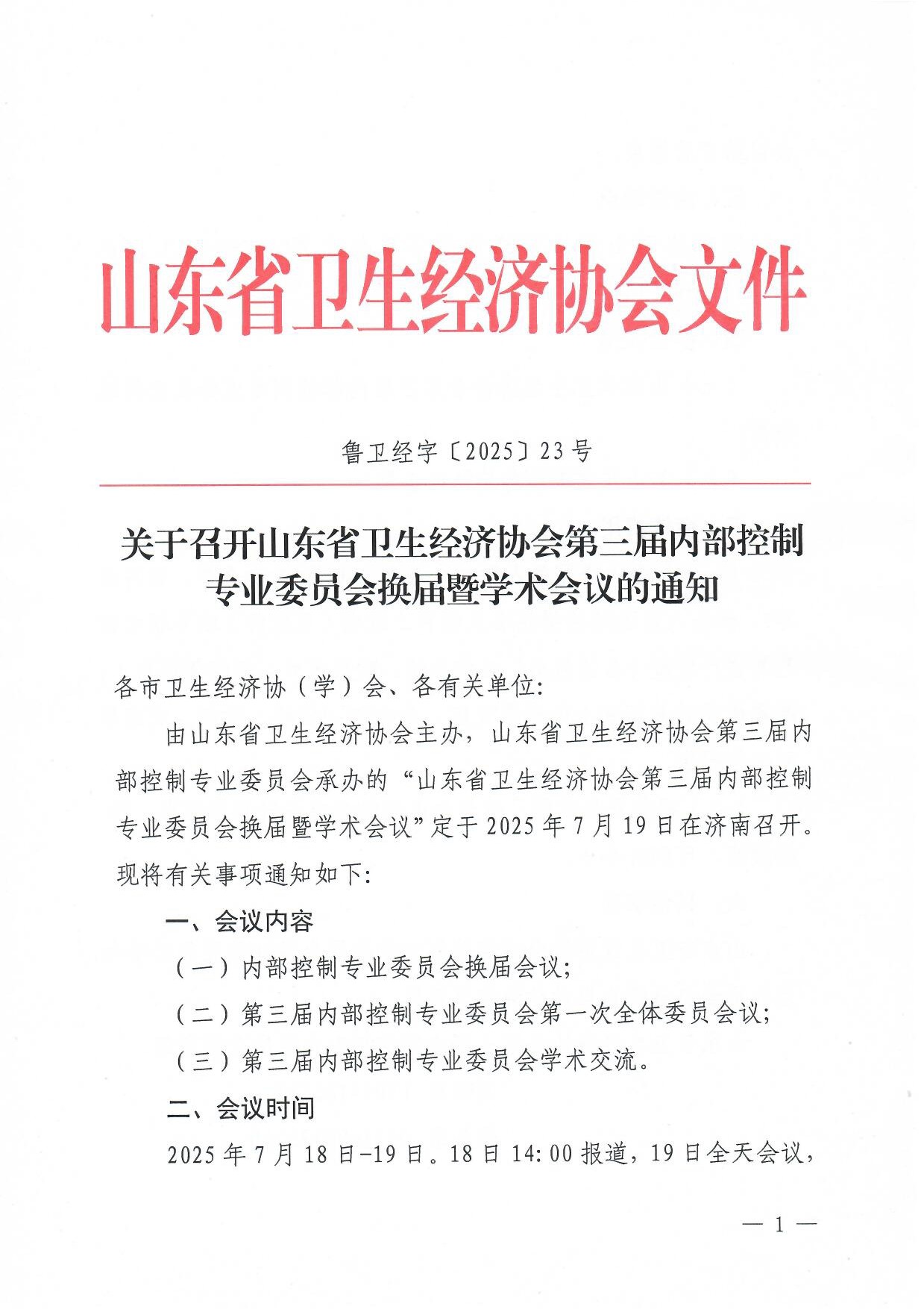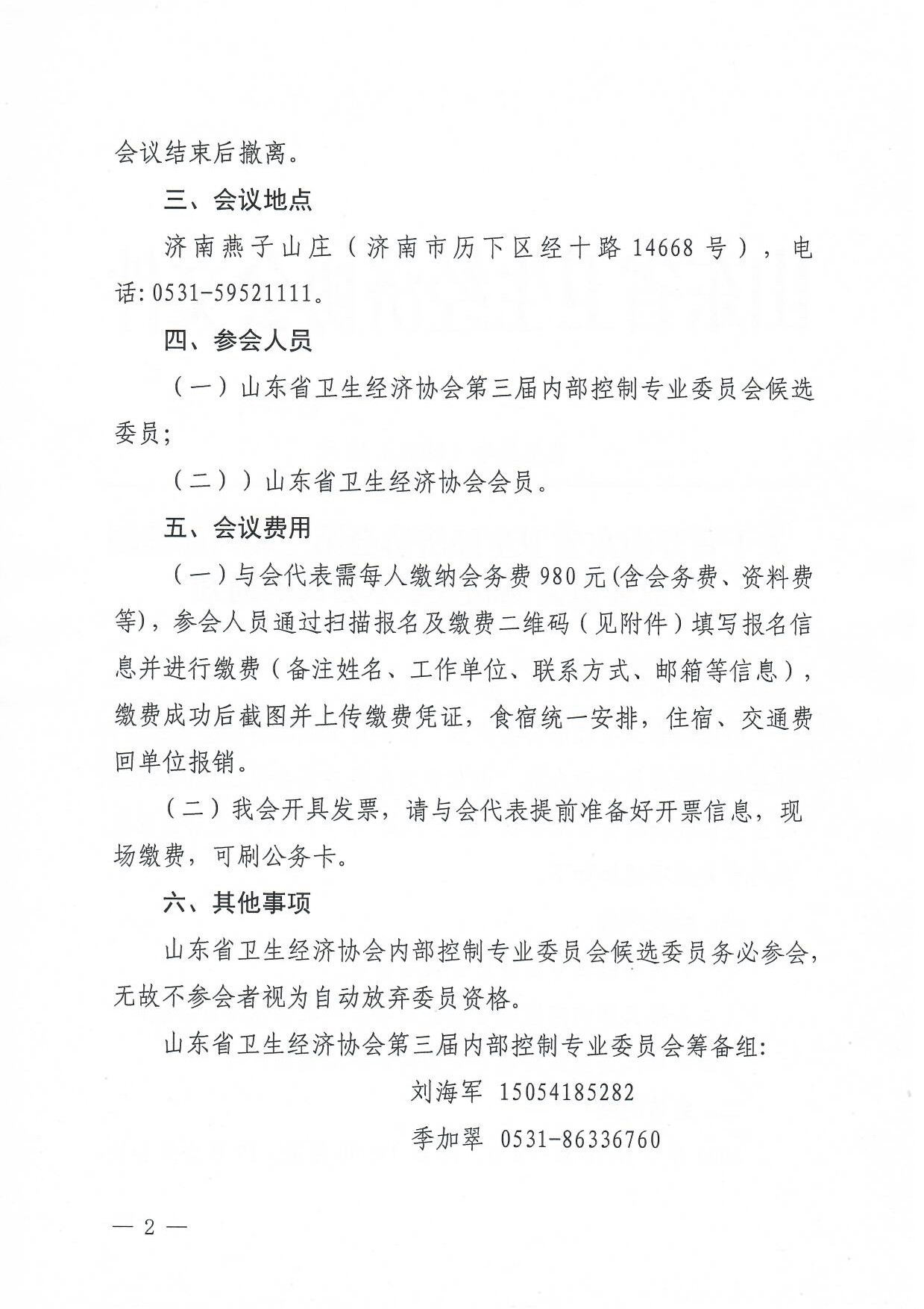 关于召开山东省卫生经济协会第三届内部控制专业委员会换届暨学术会议的通知