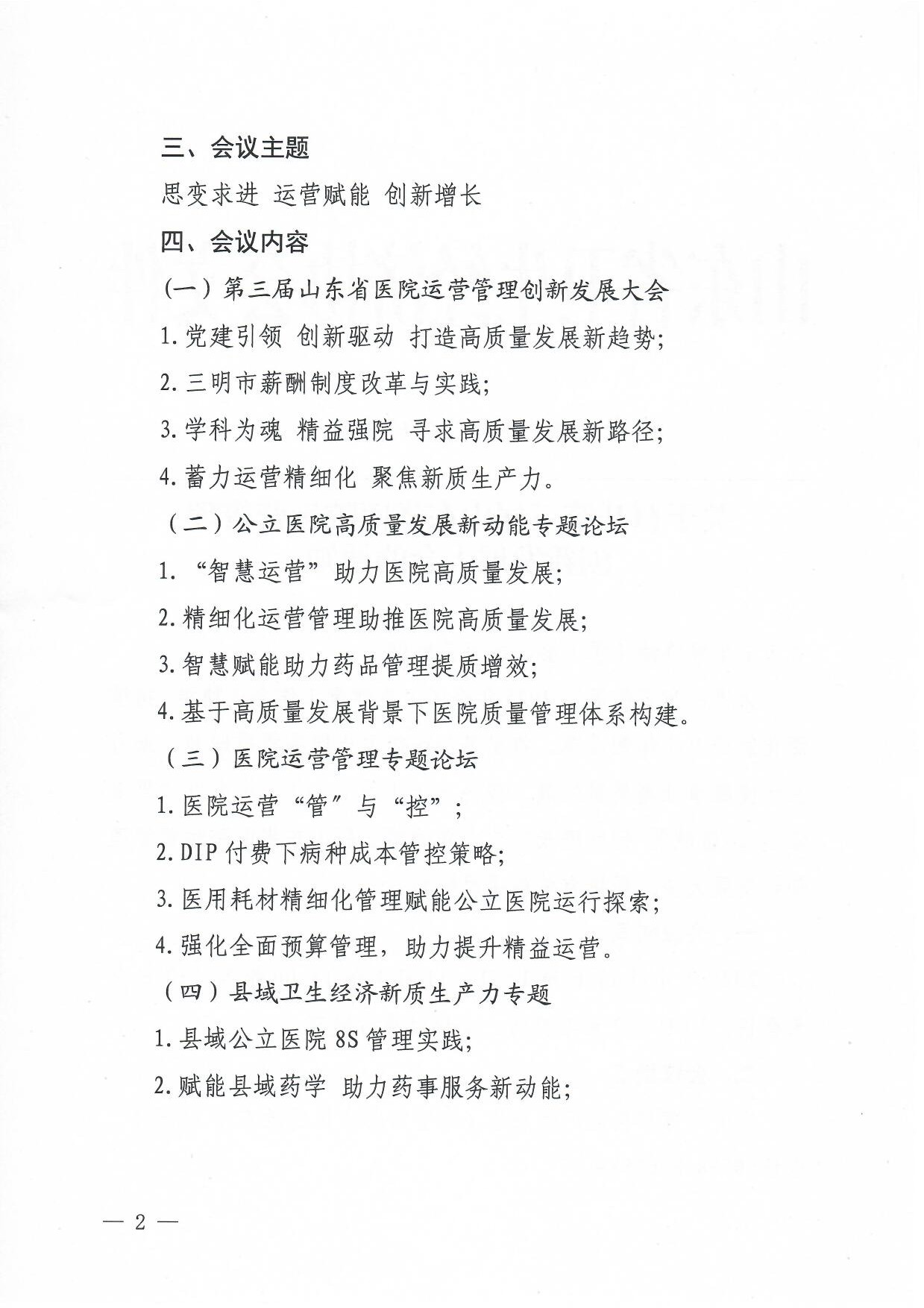 关于召开第三届山东省医院运营管理创新发展大会的通知