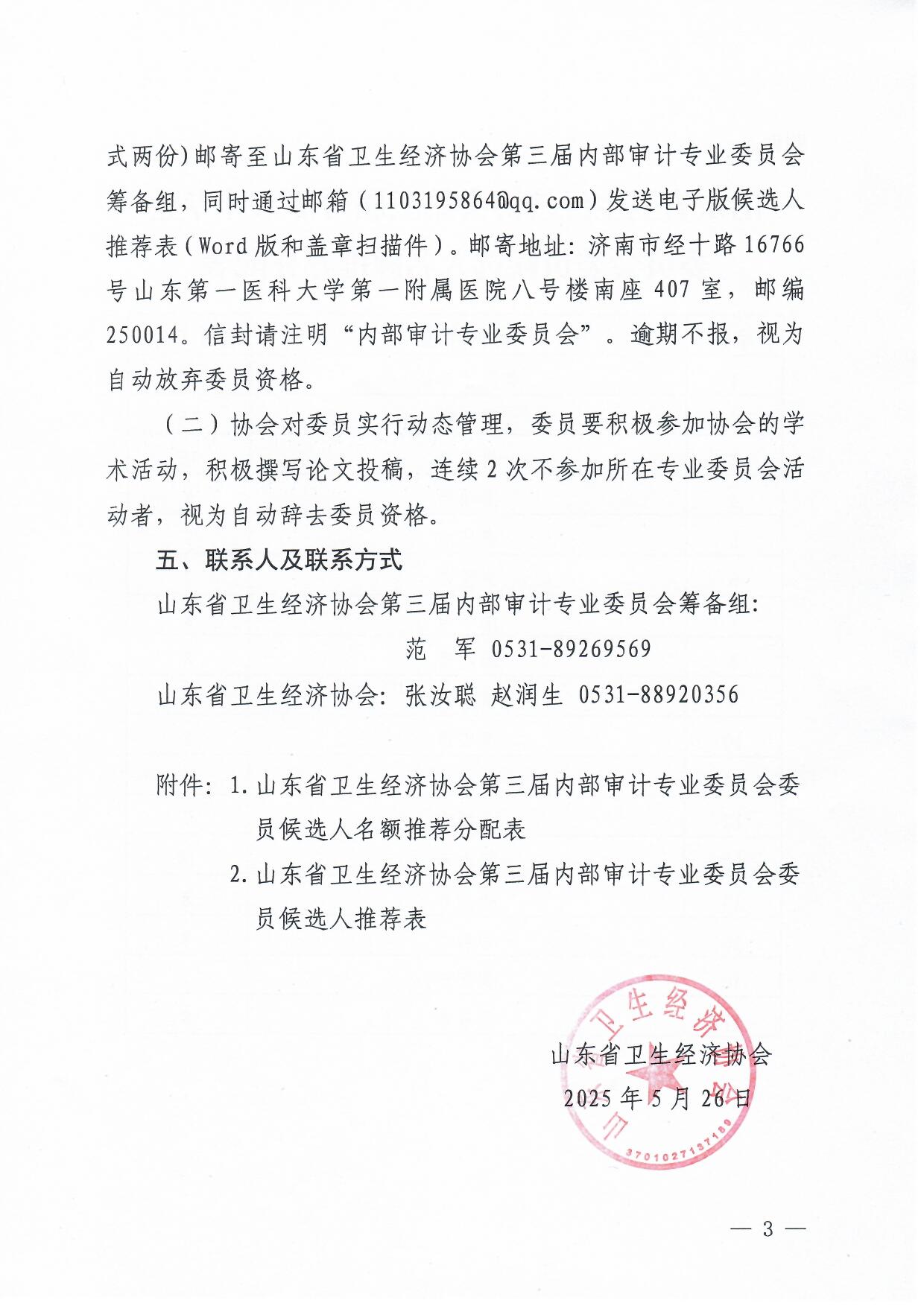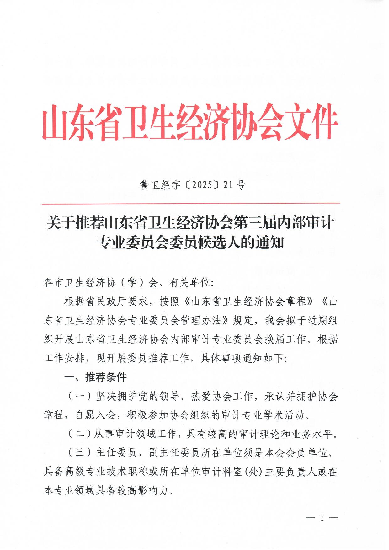 鲁卫经字【2025】21号 关于推荐山东省卫生经济协会第三届内部审计专业委员会委员候选人的通知.pdf