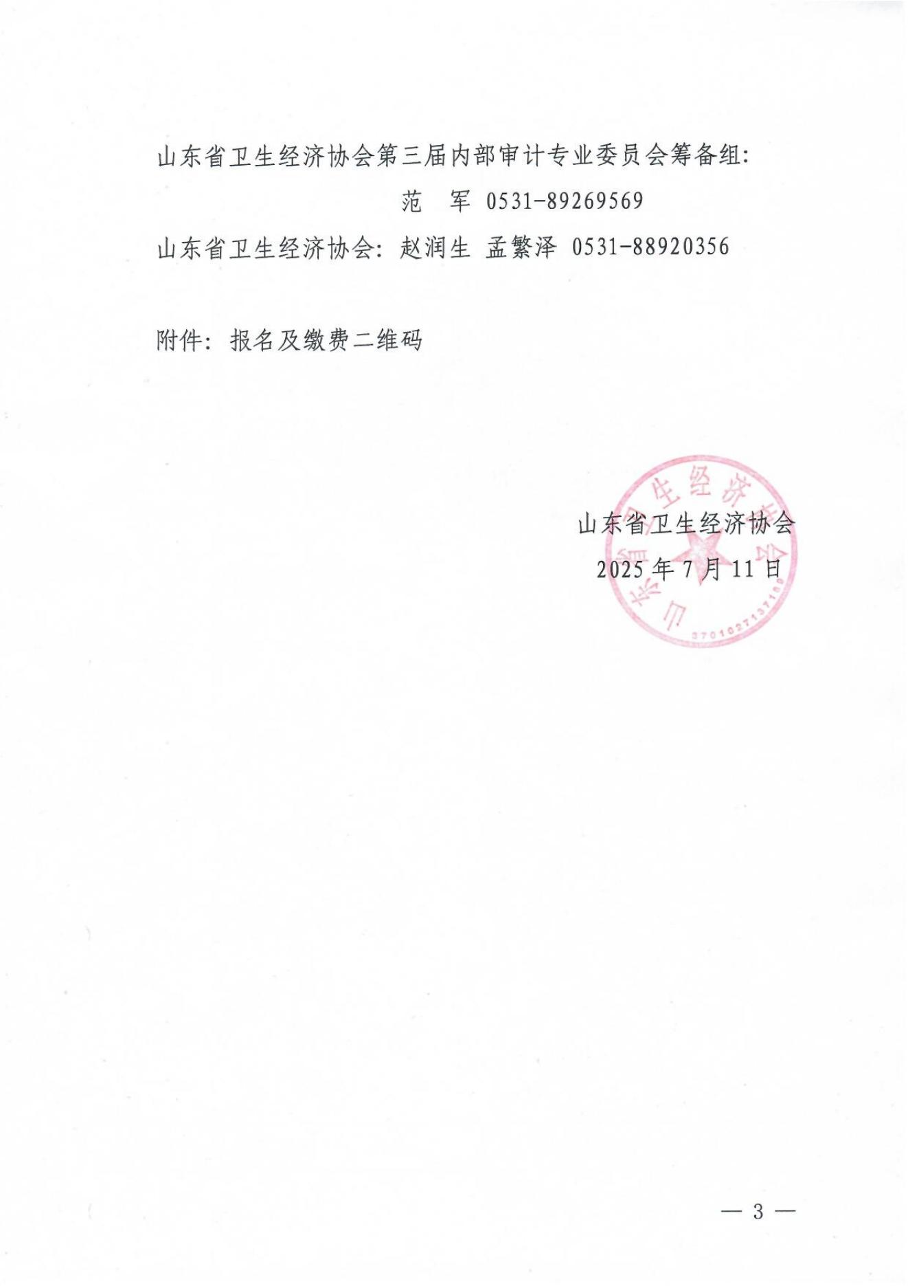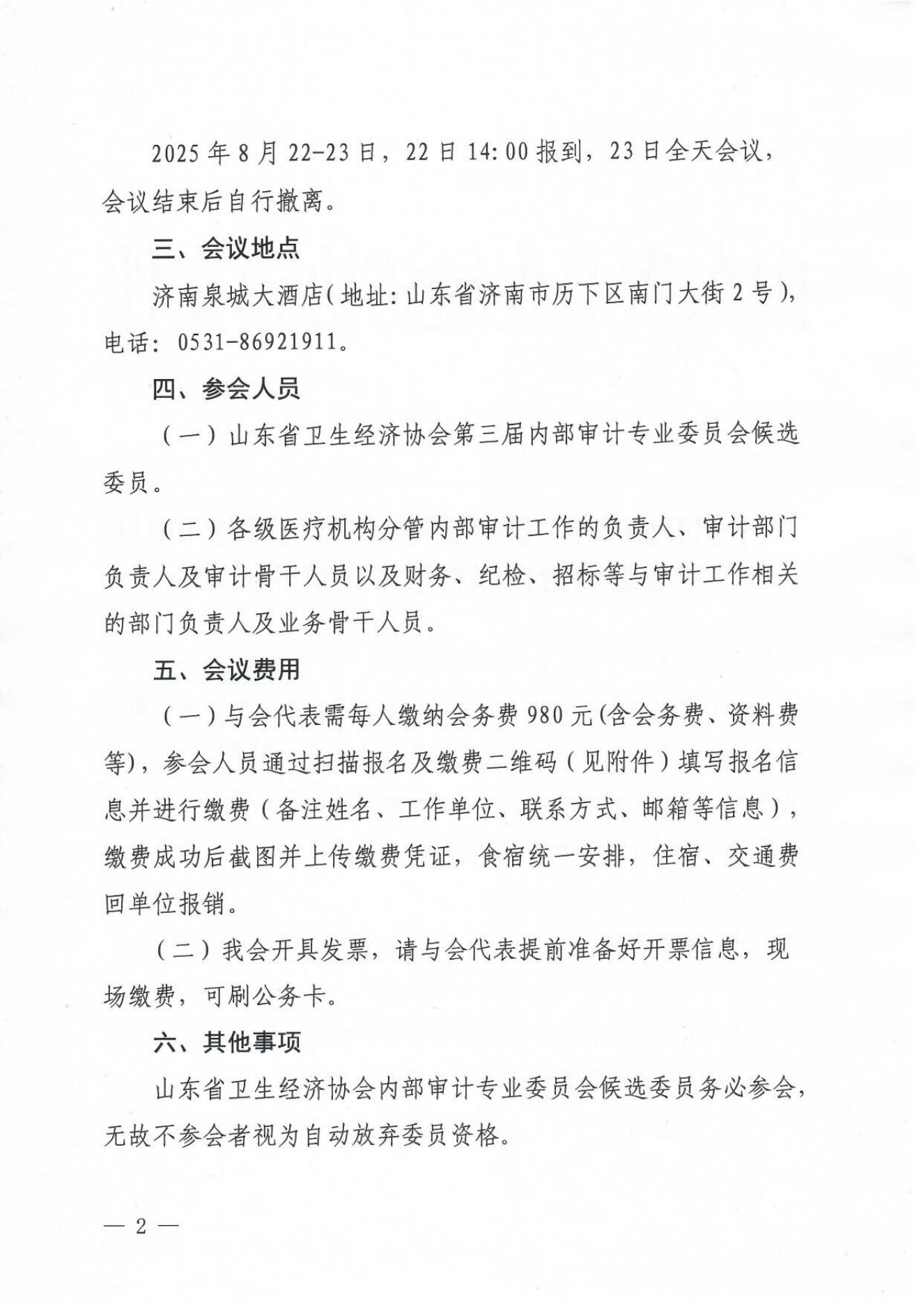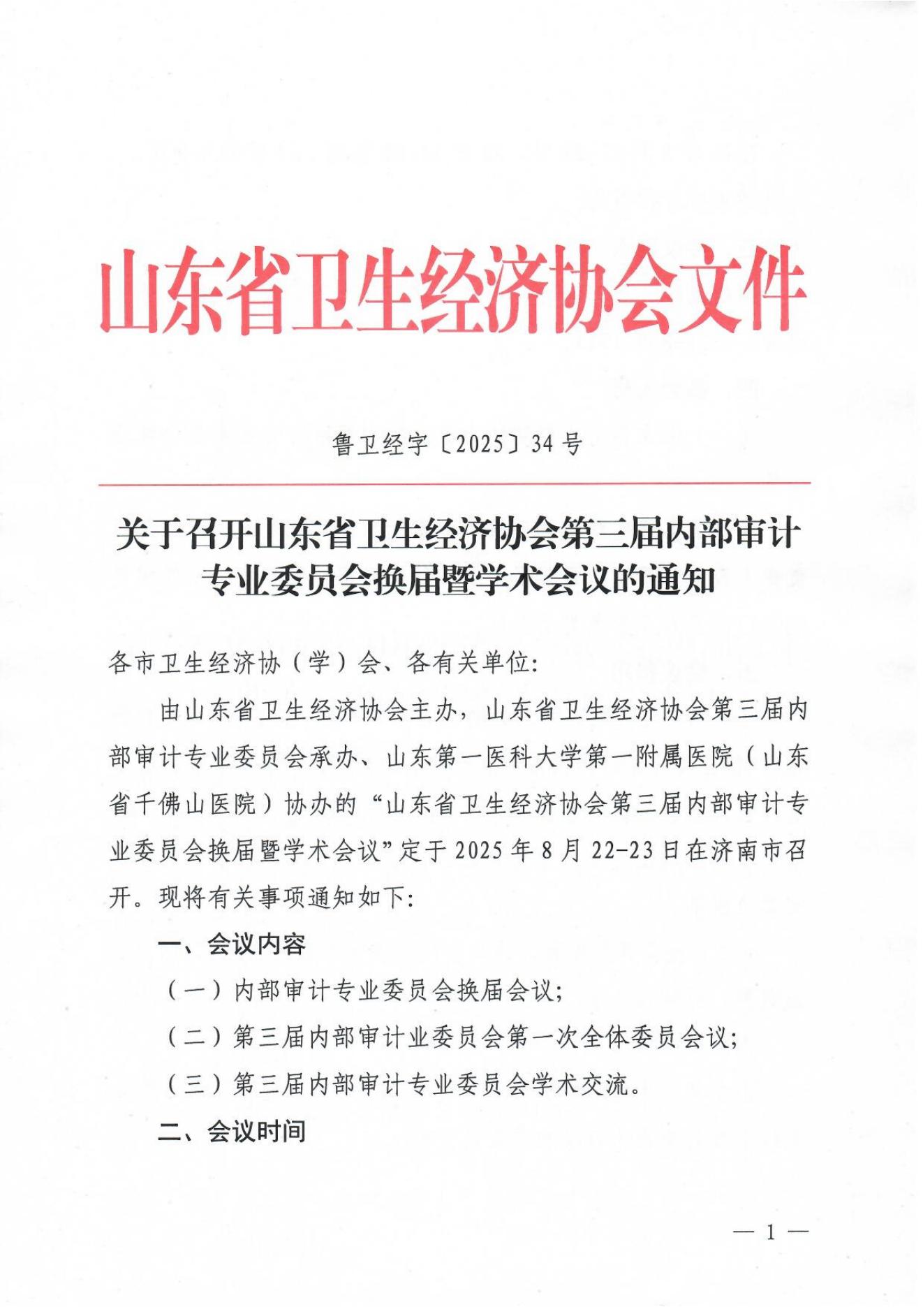 鲁卫经字【2025】34号 关于召开山东省卫生经济协会第三届内部审计专业委员会换届暨学术会议的通知.pdf