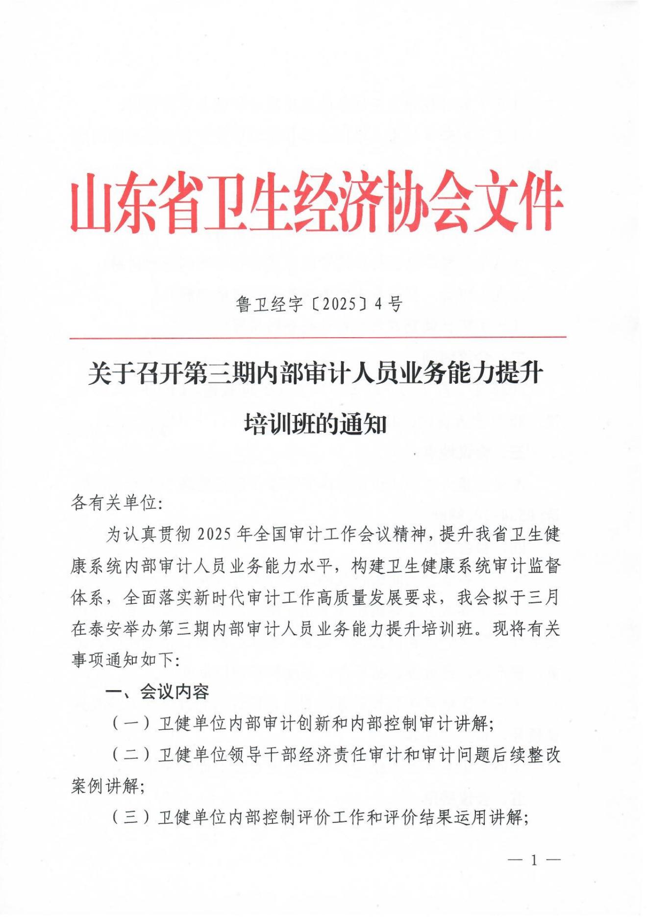 鲁卫经字【2025】4号 关于召开第三期内部审计人员业务能力提升培训班的通知.pdf