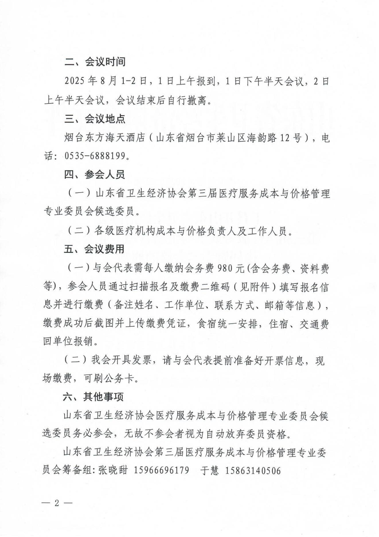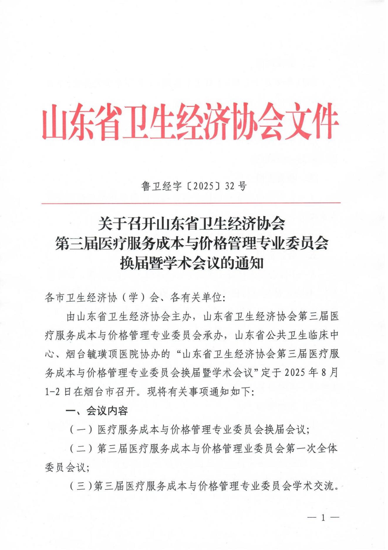 鲁卫经字【2025】32号 关于召开山东省卫生经济协会第三届医疗服务成本与价格管理专业委员会换届暨学术会议的通知.pdf