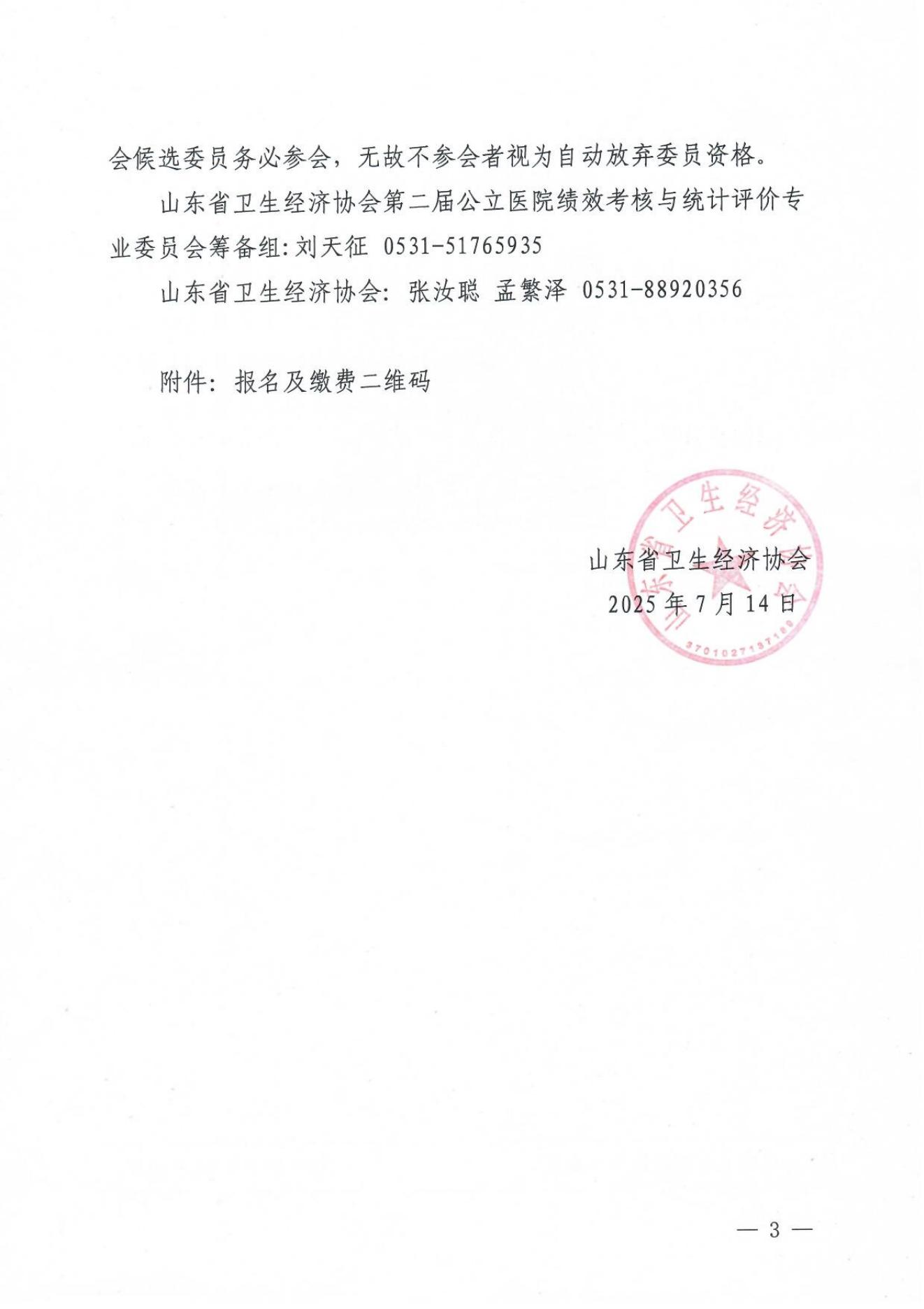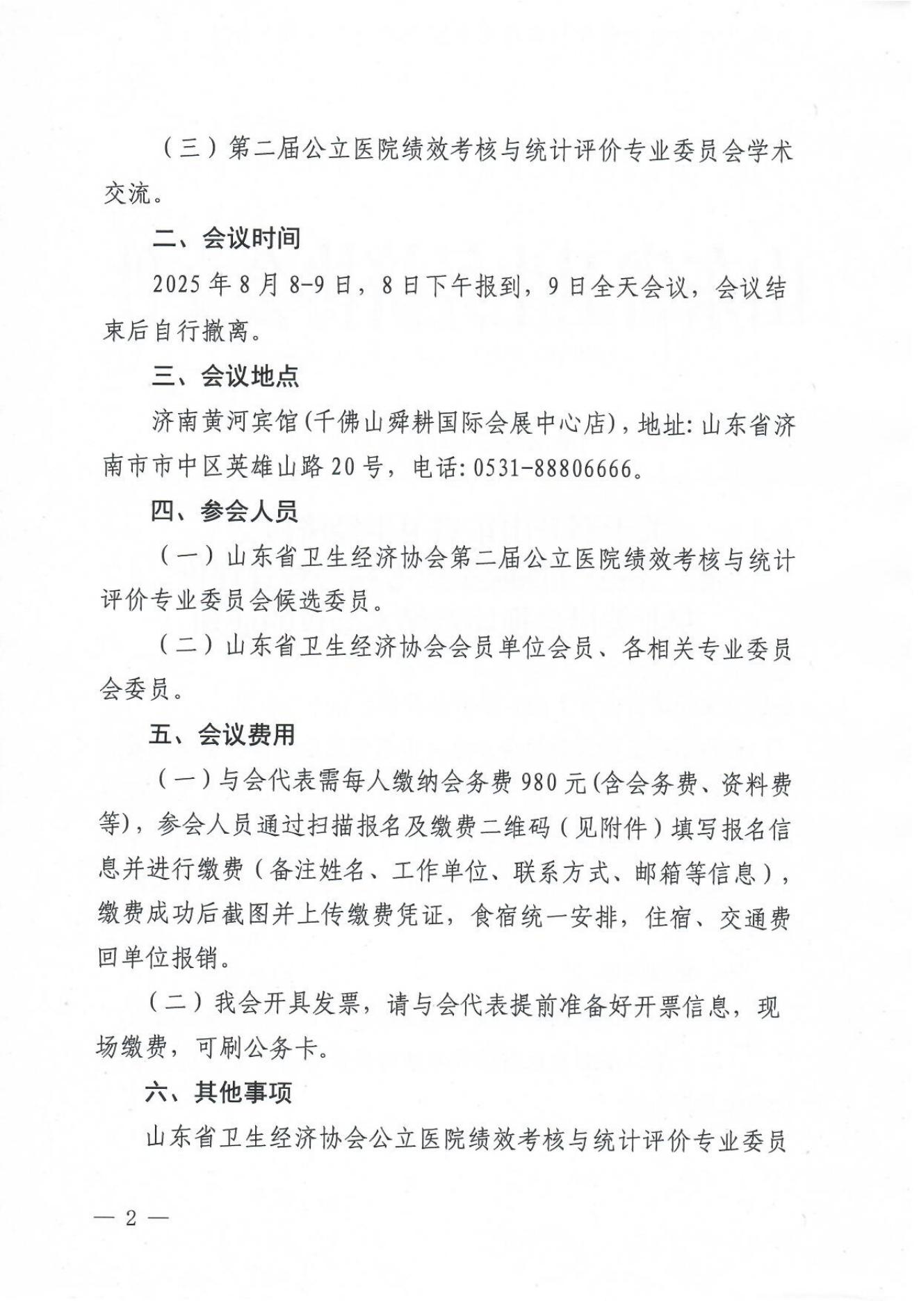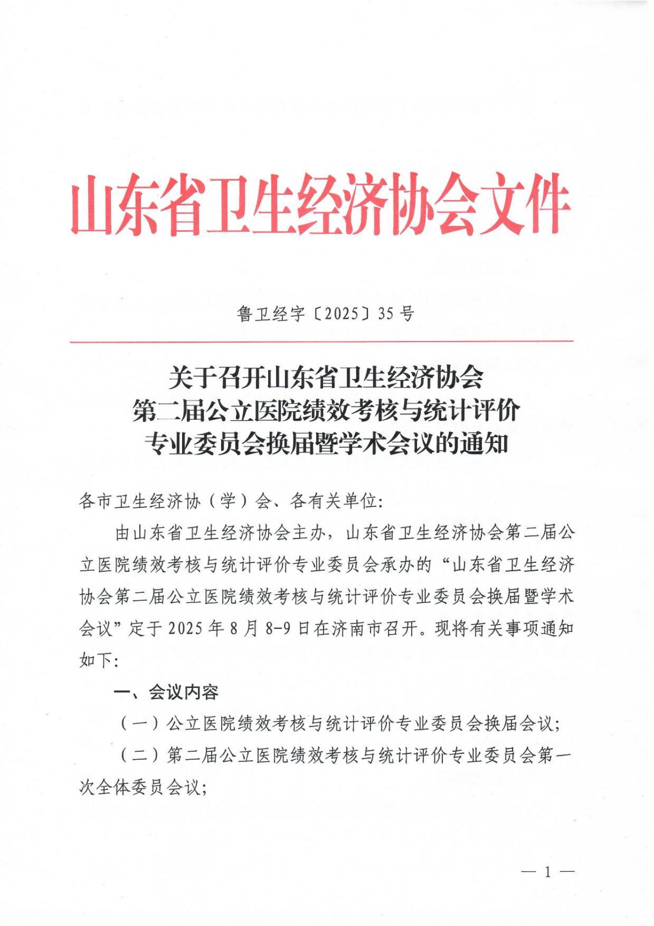 鲁卫经字【2025】35号 关于召开山东省卫生经济协会第二届公立医院绩效考核与统计评价专业委员会换届暨学术会议的通知.pdf