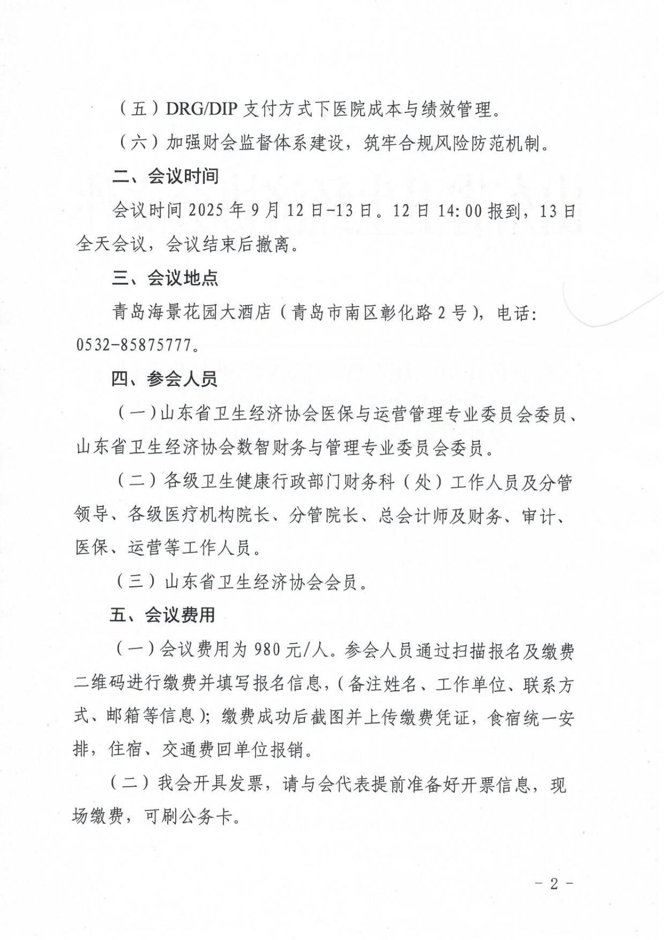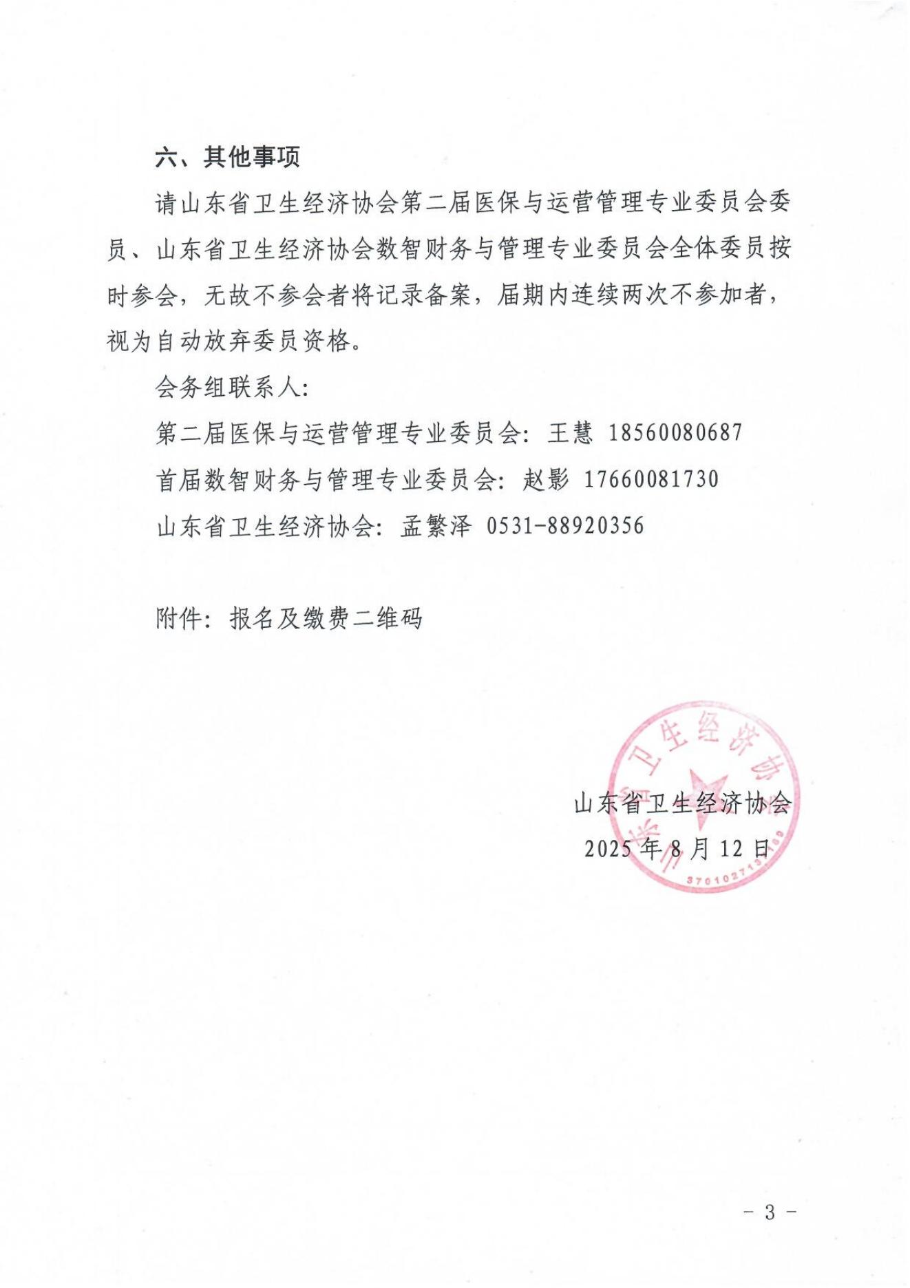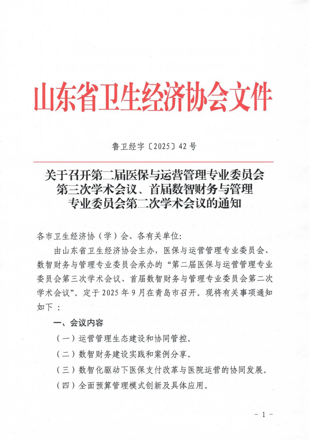 鲁卫经字【2025】42号 关于召开第二届医保与运营管理专业委员会第三次学术会议、首届数智财务与管理专业委员会第二次学术会议的通知.pdf