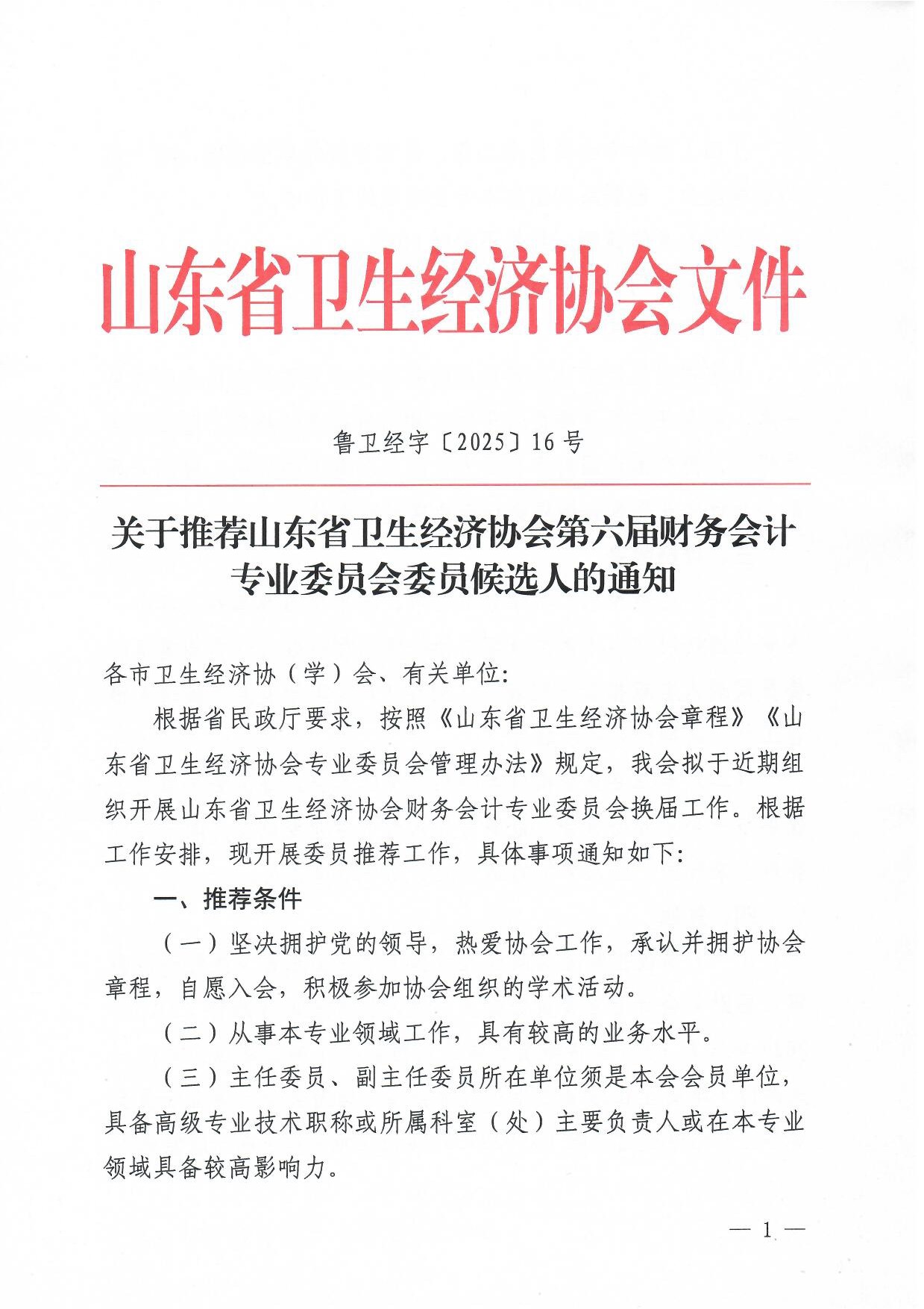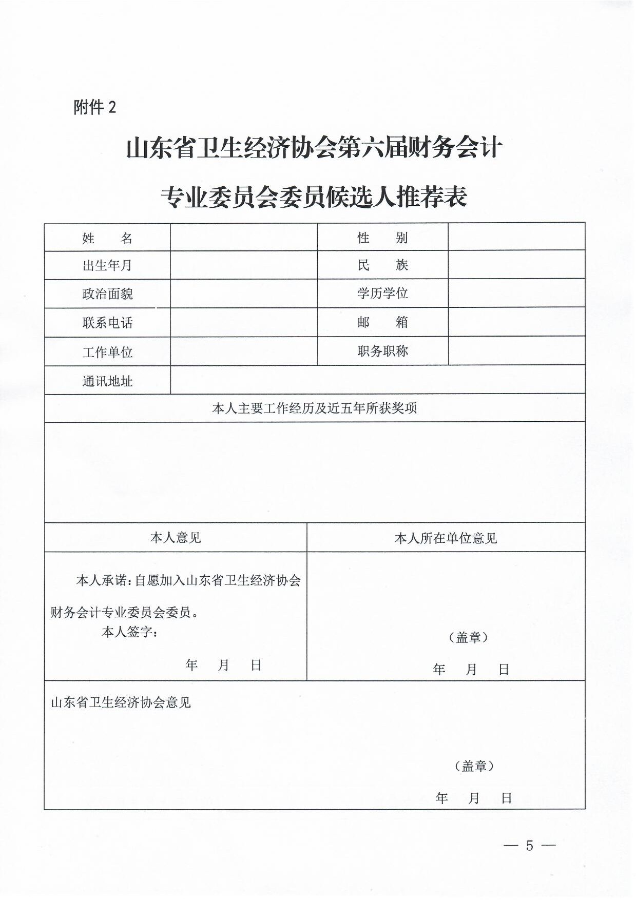 山东省卫生经济协会第六届财务会计专业委员会委员候选人推荐表.docx