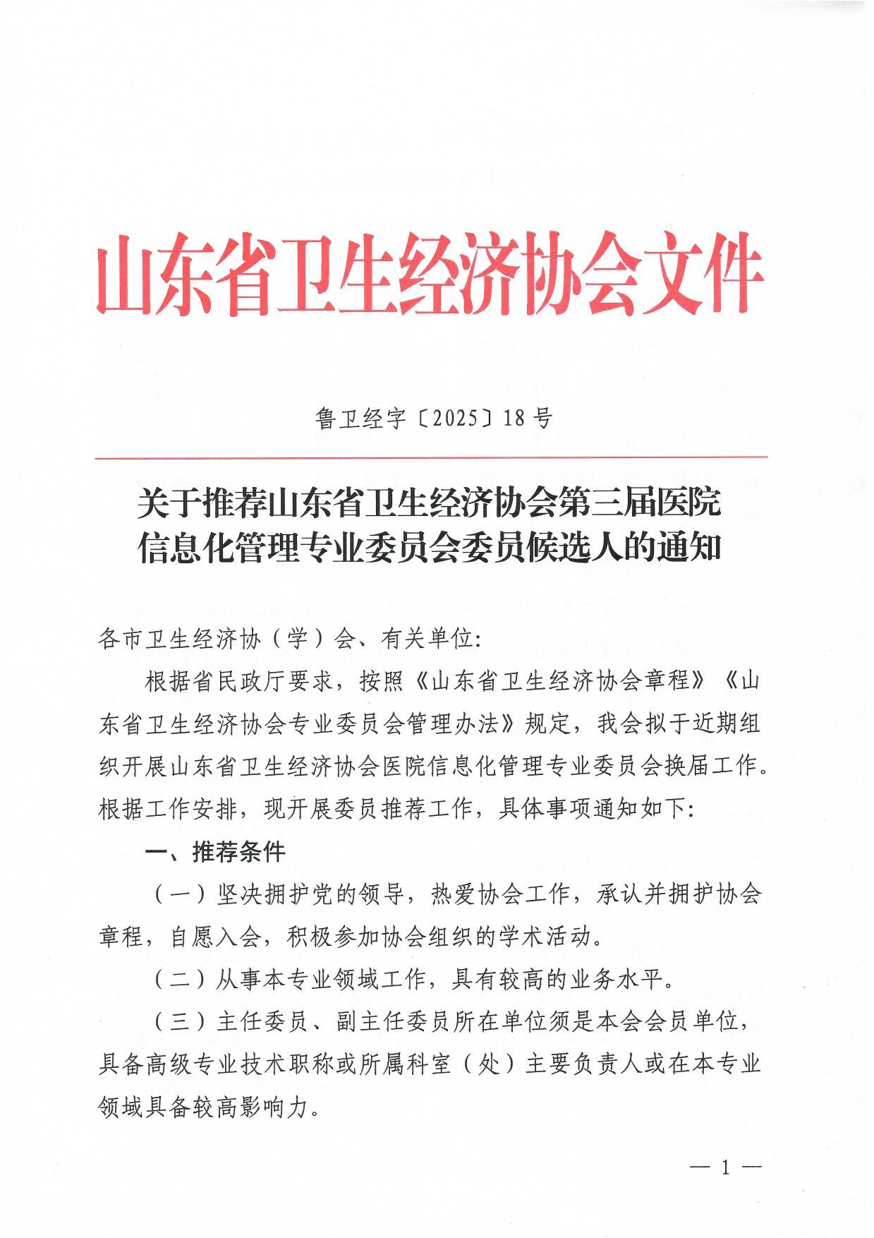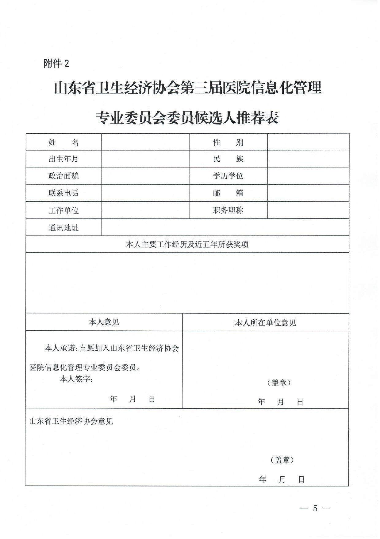 山东省卫生经济协会第三届医院信息化管理专业委员会委员候选人推荐表.docx
