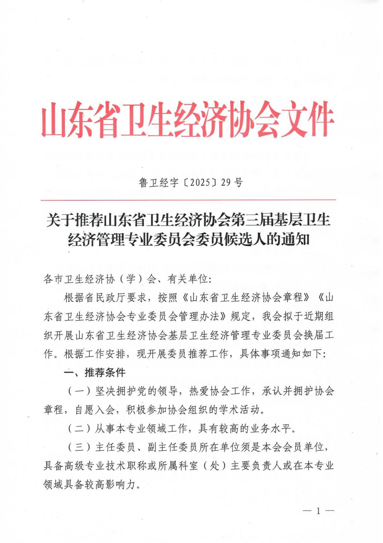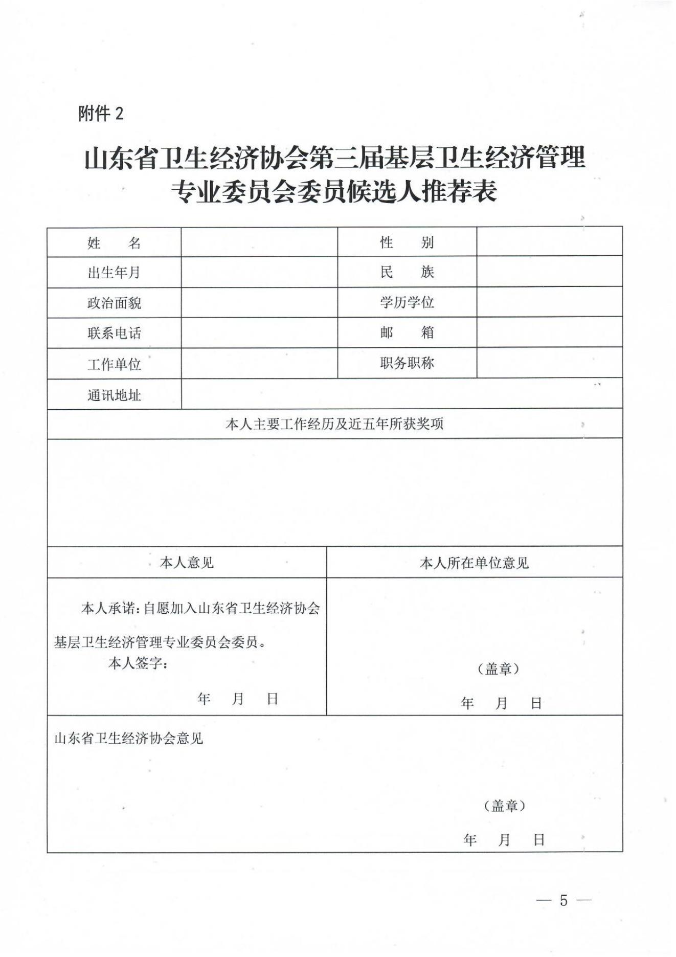 山东省卫生经济协会第三届基层卫生经济管理专业委员会委员候选人推荐表.docx