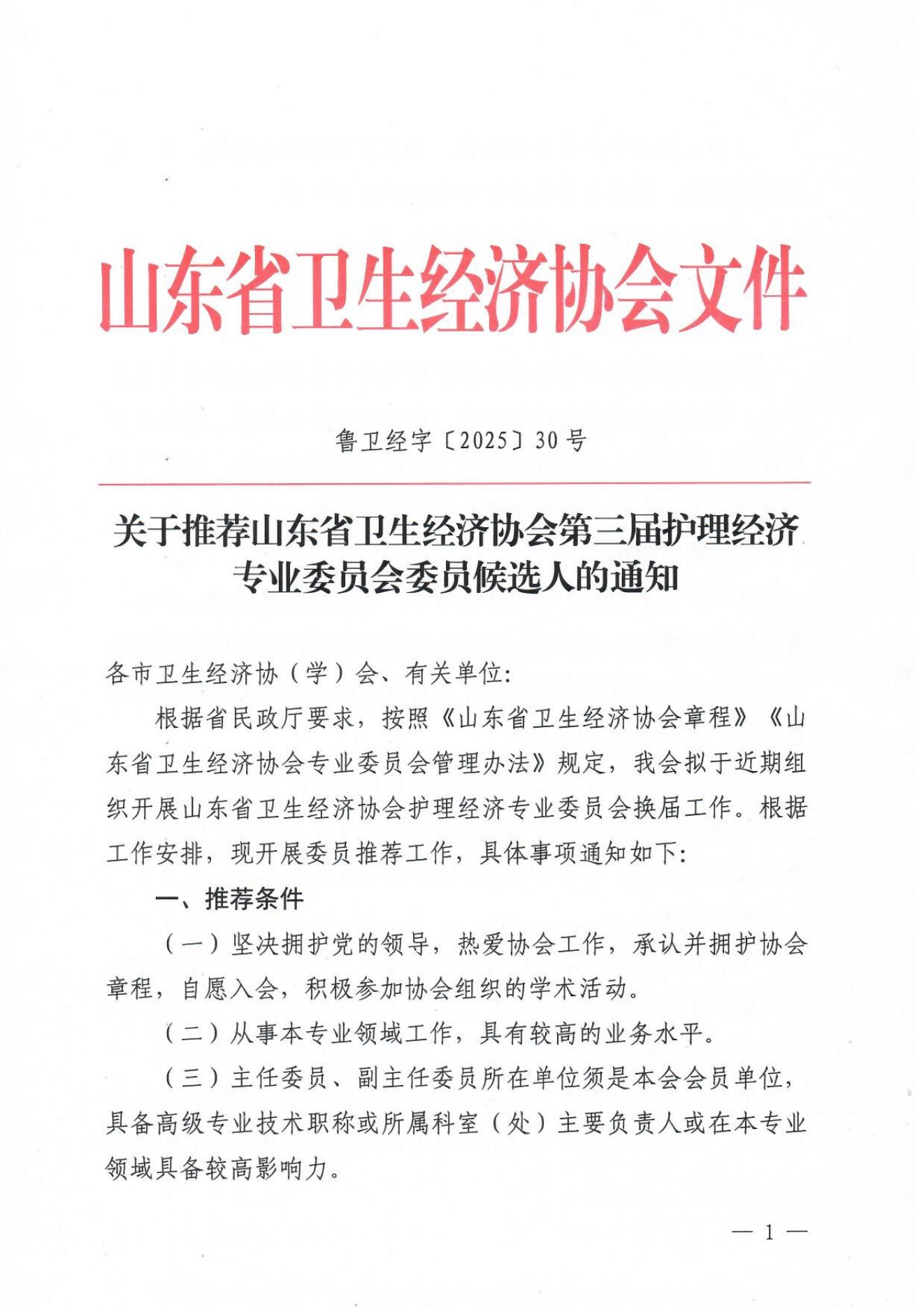 山东省卫生经济协会第三届护理经济专业委员会委员候选人推荐表.docx