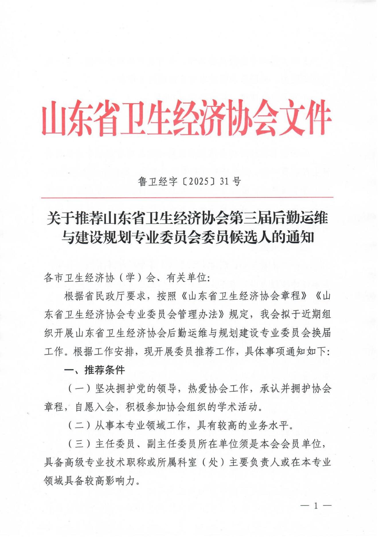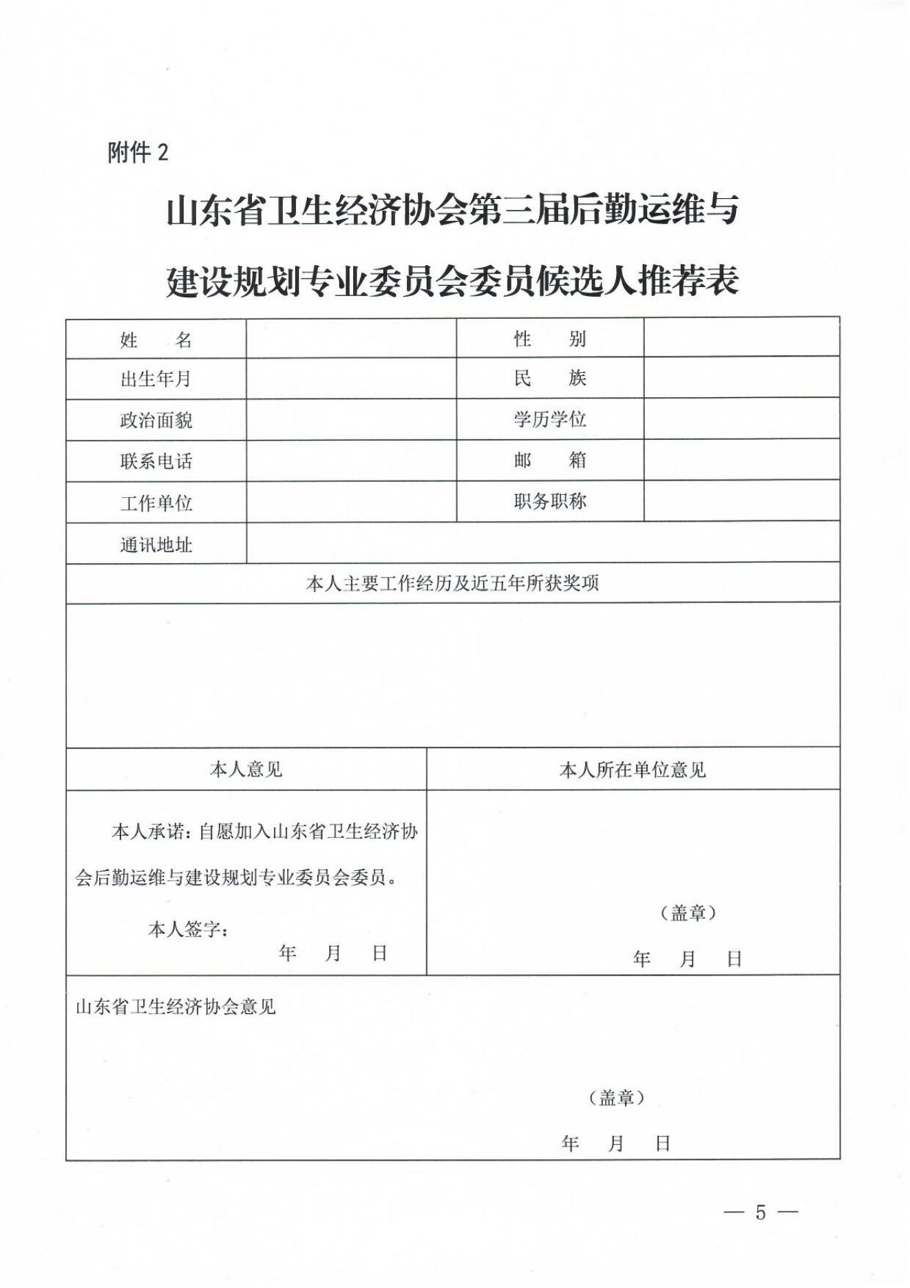 山东省卫生经济协会第三届后勤运维与建设规划专业委员会委员候选人推荐表.docx
