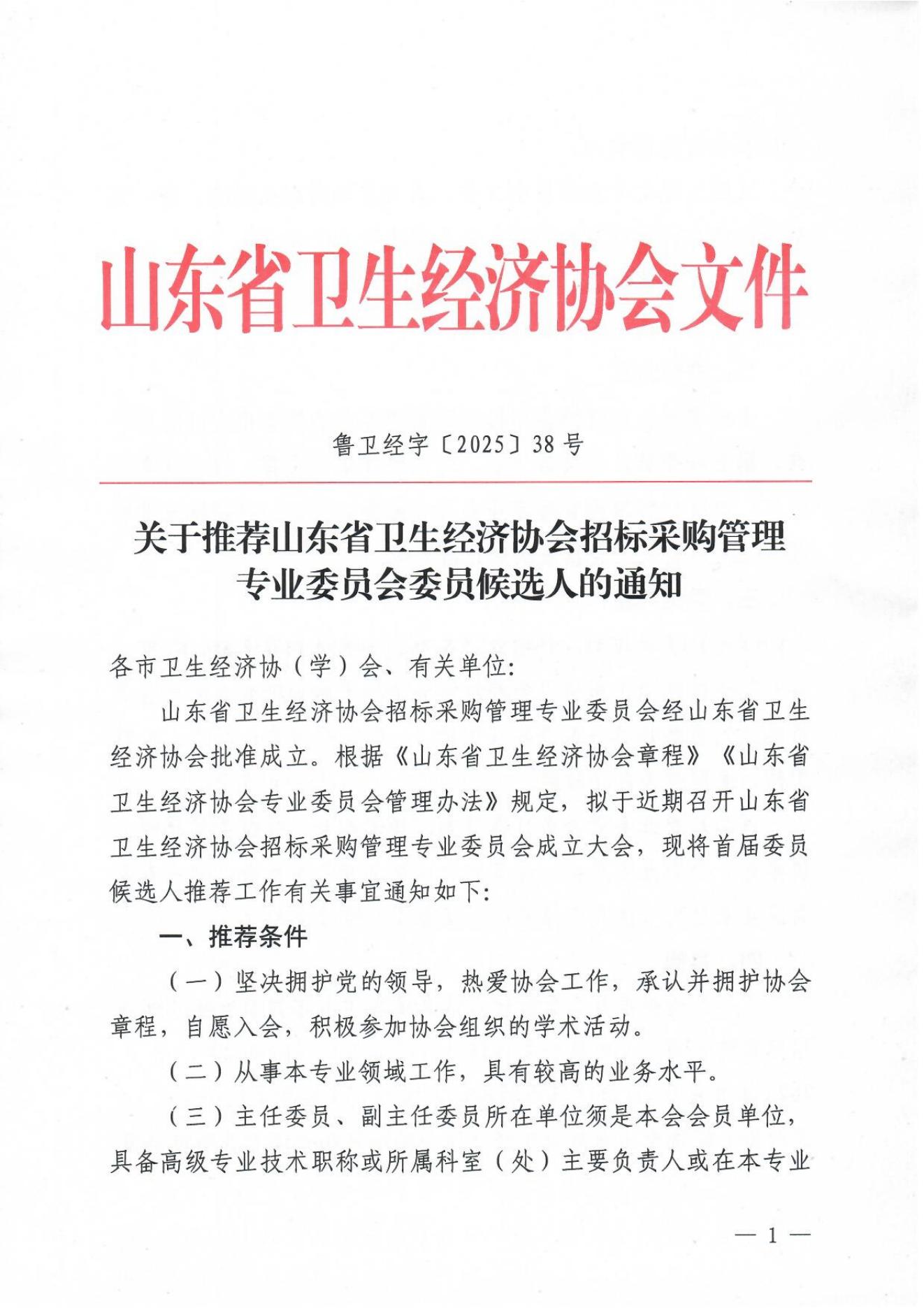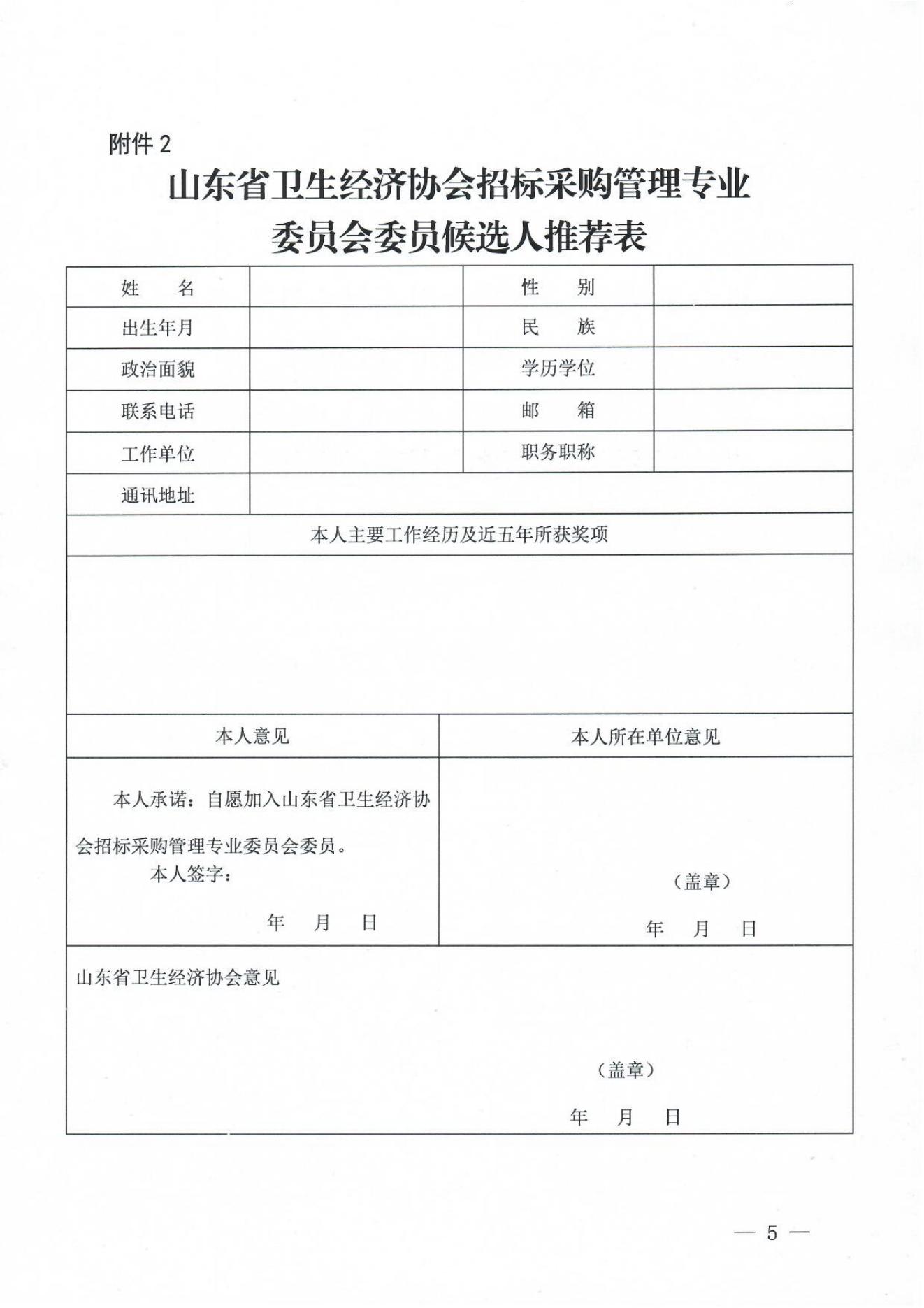 山东省卫生经济协会招标采购管理专业委员会委员候选人推荐表.docx